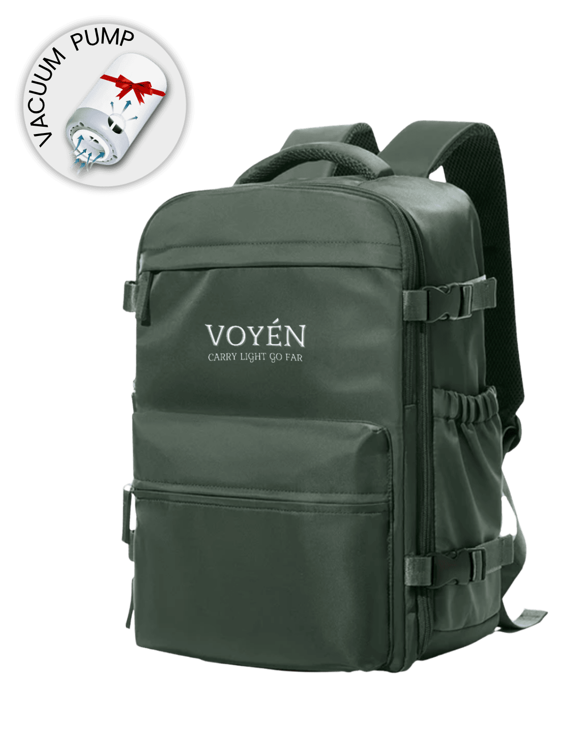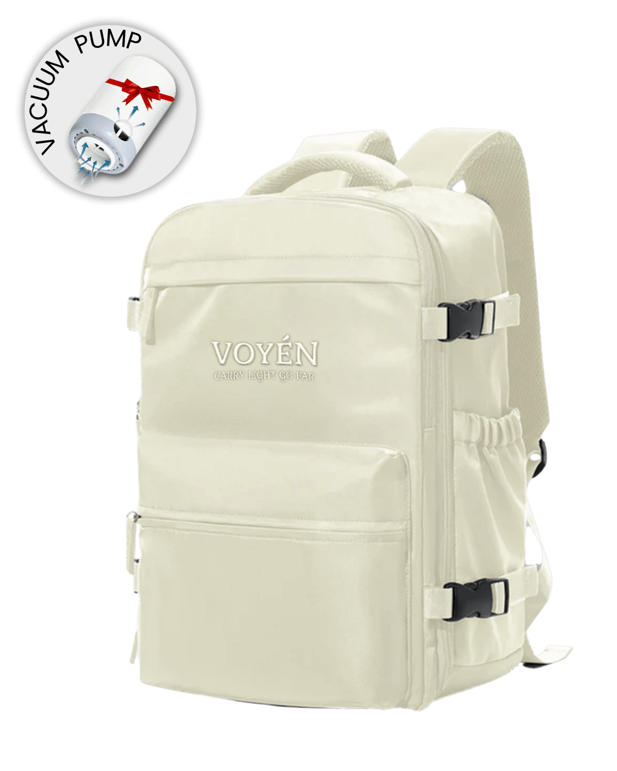 Overpacking is no longer a problem.The VOYÉN™ Travel Backpack features a built-in vacuum system that compresses your clothes by up to 50% — giving you more space without the bulk.